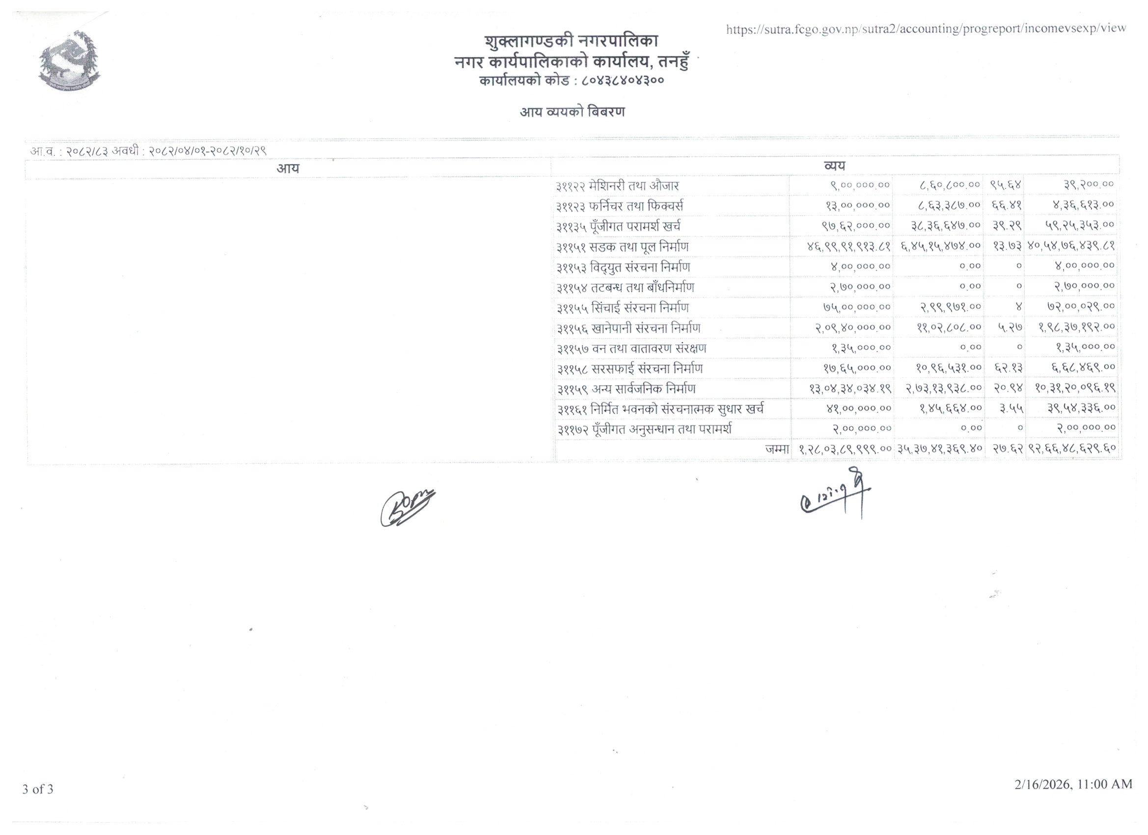 आ.व. २०८२/०८३ को श्रावन देखि माघ मसान्तसम्मको आय व्यय विवरण
