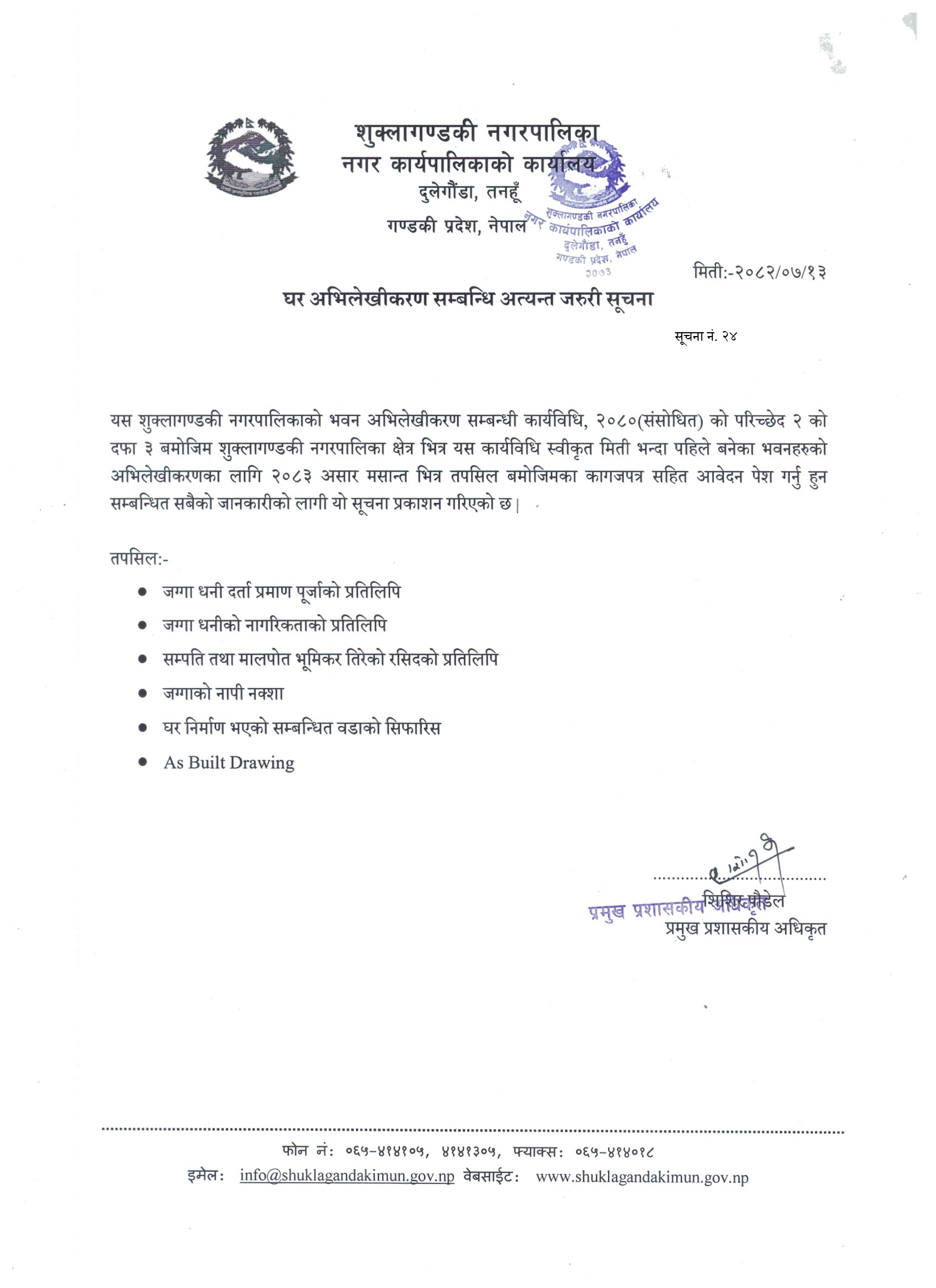 info@shuklagandakimun.gov.np, munshuklagandaki@gmail.com