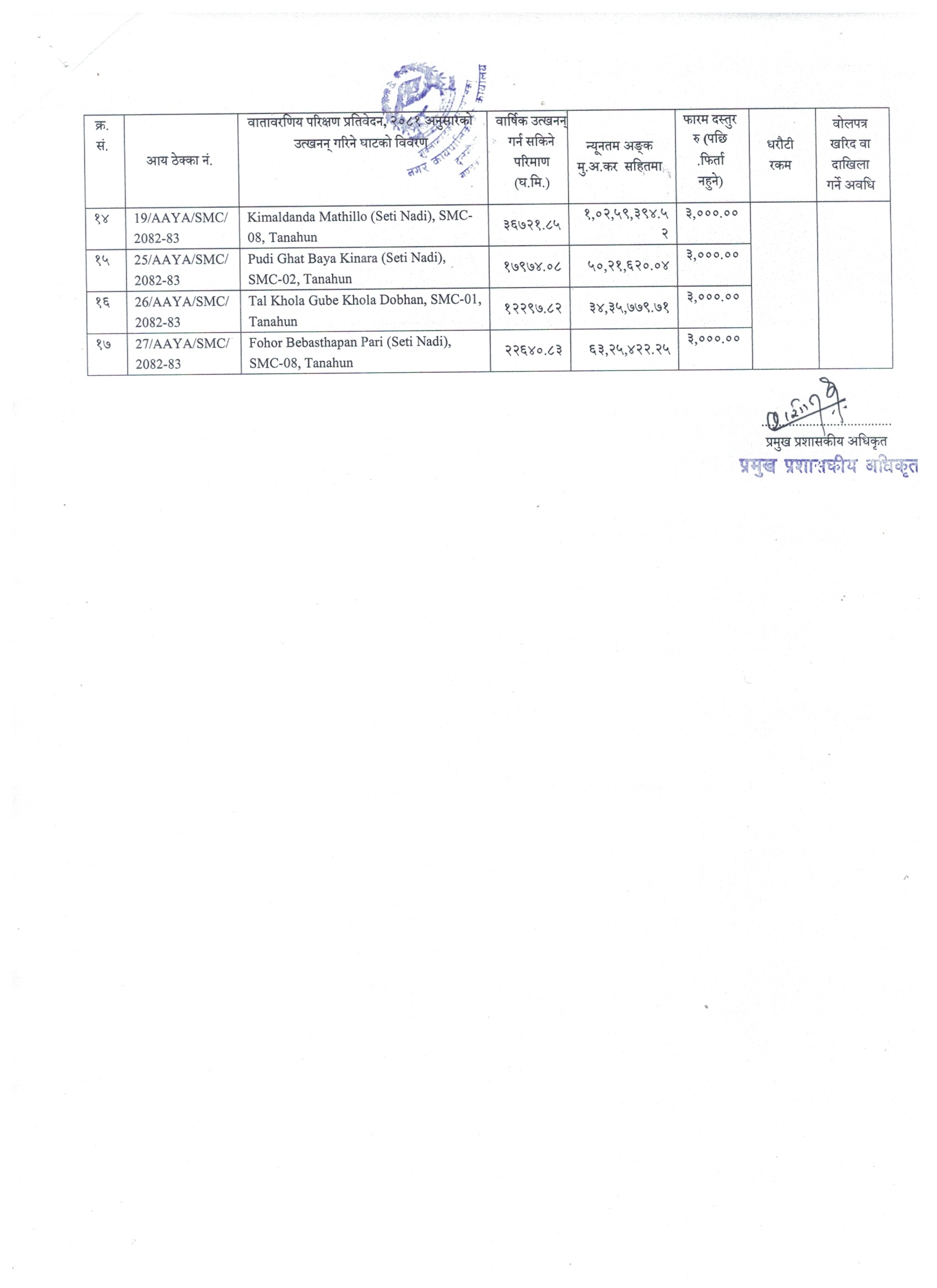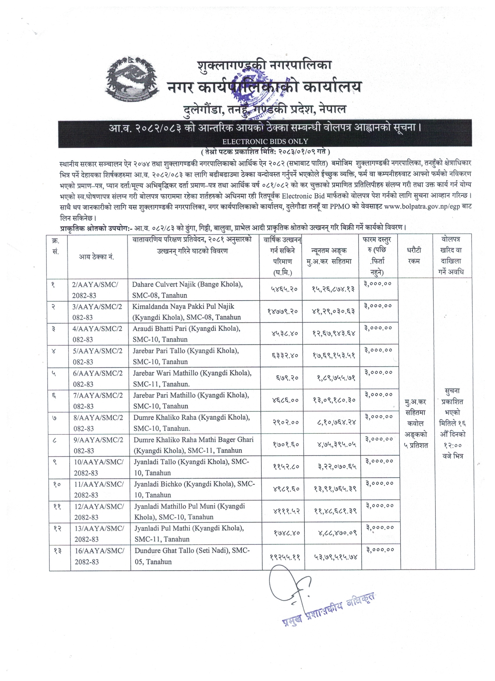 आ.व. २०८२/०८३ को आन्तरिक आयको ठेक्का सम्बन्धी वोलपत्र आह्वानको सूचना ।