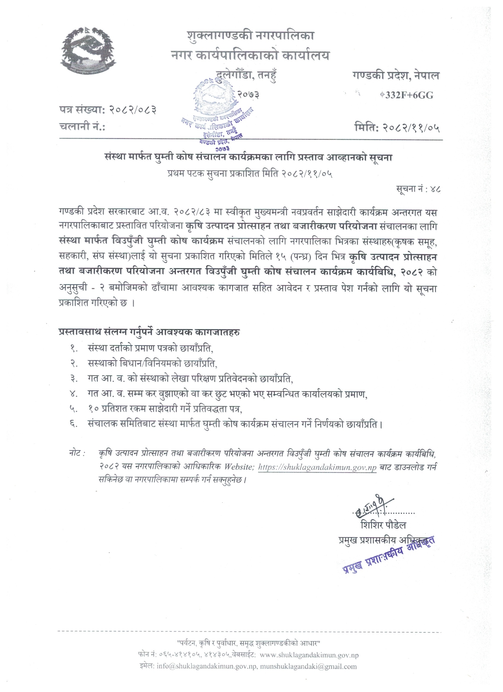 info@shuklagandakimun.gov.np, munshuklagandaki@gmail.com